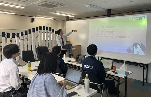 ストーンズでは、社会人としての基本的なスキルや当社についての知識を身に着けた後、職種ごとの研修に移行します。